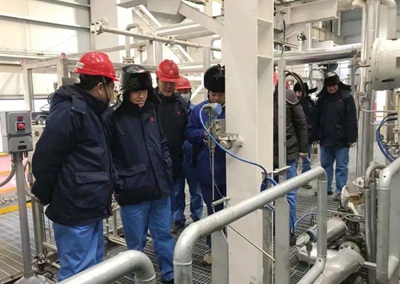 許緘濤首先來到甲醇聯合裝置施工現場進行了視察。先后到甲醇合成精餾、氣化、灰水處理、變換、低溫甲醇洗等單元進行了查看,聽取了相關負責人項目情況介紹,并對項目試車運行、技術保障等情況進行了詳細詢問。許緘濤對項目組工作表示肯定,并強調要全力做好現場防凍防凝工作,針對冬季帶來的不利因素,要進一步強化現場管理,嚴格執行施工程序和標準,細化工作方案,在確保安全質量受控的前提下,為業主投料開車做好保駕護航工作。