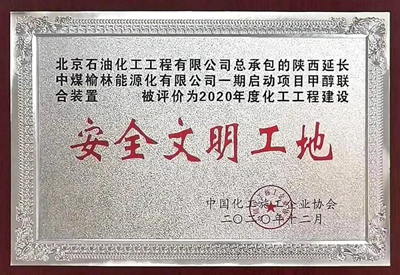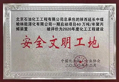 近日,從中國(guó)化工施工企業(yè)協(xié)會(huì)傳來(lái)喜訊,由公司總承包的榆能化一期啟動(dòng)項(xiàng)目填平補(bǔ)齊工程甲醇聯(lián)合裝置2線和40萬(wàn)噸/年聚丙烯裝置被授予“2020年度化工工程建設(shè)安全文明工地”稱號(hào)。