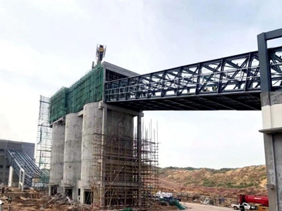 據悉,關乎到鍋爐點火的輸煤主棧橋共6個,分別是2、3、6、7、8、9號輸煤棧橋,全長490米,共24跨,寬7.4米,總重980噸,主要由鋼柱和鋼桁架及橋面、屋面組成。其中9#棧橋吊裝面臨組合桁架噸位大、結構高、吊裝安全風險大、且與鍋爐鋼結構施工及本體安裝交叉作業多,等諸多困難。在項目部大力協調下,超前策劃、精心組織、科學安排,專業經理和技術員多次協調分包單位優化吊裝方案,相關技術人員在吊裝前認真檢查吊裝機械,對作業人員進行詳細的安全技術交底,嚴格吊裝過程監督,及時解決問題,經過項目相關各方的共同努力,全力溝通協調,順利完成了棧橋的吊裝任務。