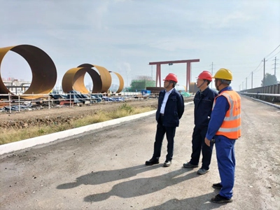 曹堅先后來到碳鑫乙醇項目建設(shè)現(xiàn)場及陜西化建設(shè)備制造公司的超限塔器現(xiàn)場設(shè)備制造廠進行了視察,重點檢查了工程進度、安全生產(chǎn)、技術(shù)管控、環(huán)境保護、疫情防控等情況,對本項目目前的"穩(wěn)增長、抗疫情、保安全"的工作表示肯定。