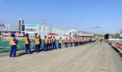 為確保設(shè)備、機(jī)械、材料按計(jì)劃投入,項(xiàng)目部積極與當(dāng)?shù)卣⒎酪卟块T、建設(shè)單位、設(shè)備廠家等單位溝通協(xié)調(diào),了解防疫政策,避免因疫情影響導(dǎo)致運(yùn)輸受阻。同時,為確保超限設(shè)備項(xiàng)目現(xiàn)場制作按計(jì)劃推進(jìn),項(xiàng)目部將辦公室、會議室全部作為工人宿舍,配備必要的生活、防疫物資,為封控作業(yè)的90余名工人提供健康、安全的現(xiàn)場食宿條件,確保設(shè)備制造不停歇。