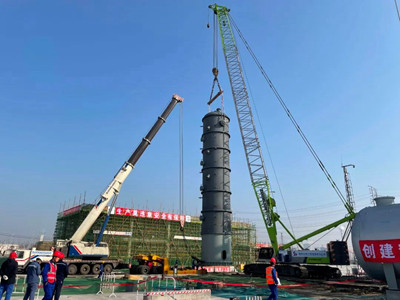 碳鑫乙醇項(xiàng)目主工藝關(guān)鍵設(shè)備順利吊裝