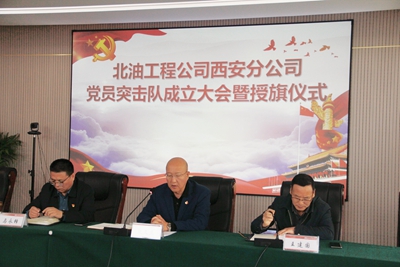 近日,北京石油化工工程有限公司西安分公司黨總支舉辦了黨員突擊隊成立大會暨授旗儀式,會上由西安分公司黨總支書記、經理段文杰宣布成立土建室黨員突擊隊以及配管室黨員突擊隊,并授予他們黨員先鋒突擊隊旗幟。