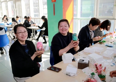 為增強(qiáng)慶祝活動的趣味性、挑戰(zhàn)性、協(xié)作性,組織開展手工制作“永生花”體驗活動。活動中,工作人員提前將材料進(jìn)行分類準(zhǔn)備好,并詳細(xì)講解“永生花”的制作流程和技巧。大家邊學(xué)邊交流經(jīng)驗,以塑刀為針,以膠水為線,紛紛動起手來,傾力展示自己豐富的想象力和創(chuàng)造力,將工作中的細(xì)心、專心、耐心投入到“永生花”的制作上。經(jīng)過個把小時,女職工們制作出了一朵朵精美的“永生花”,看著自己親手制作的作品,大家臉上洋溢著滿滿的成就感和幸福感。火熱的氛圍,也將此次“三八”節(jié)活動推向了高潮。
