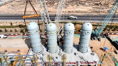 近日,由北京石油化工工程有限公司EPC總承包的陜西延長石油榆林凱越煤化50萬噸/年甲醇制乙醇項目取得重要進(jìn)展。項目6臺核心反應(yīng)器經(jīng)過14天緊張施工,已全部順利完成安裝就位。