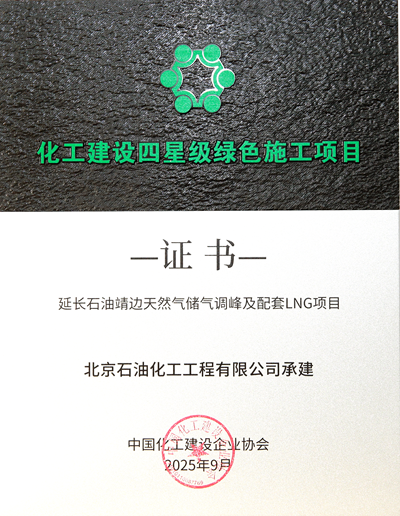 近日,由北京石油化工工程有限公司(簡稱"北油工程")總承包的延長石油靖邊天然氣儲氣調(diào)峰配套LNG項目,憑借在綠色施工領(lǐng)域的卓越表現(xiàn),榮獲"化工建設(shè)四星級綠色施工項目"稱號。該榮譽(yù)的獲得,不僅是對項目建設(shè)團(tuán)隊綠色施工實(shí)踐的高度認(rèn)可,更彰顯了北油工程在踐行綠色發(fā)展理念、推動化工建設(shè)行業(yè)高質(zhì)量發(fā)展方面的堅實(shí)實(shí)力。