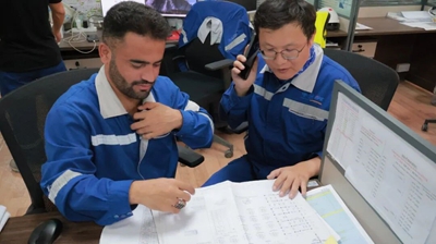 從油庫主體施工的圖紙復核、技術交底,到碼頭至油庫管道建設的現場技術指導,再到施工過程中的設計細節優化,兩名工程師每天深入各個施工作業點,與中阿施工團隊、聯合體合作方現場管理人員緊密溝通對接。針對現場施工中可能出現的設計與實操銜接問題,他們結合項目實際情況及時調整優化技術方案;為保障施工精度,對每一個施工環節的技術參數進行反復核對確認,確保施工全過程嚴格契合設計標準,用專業的技術能力為現場施工掃清技術障礙,保障項目建設平穩推進。